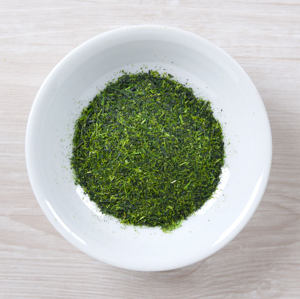 旬を迎えて太陽の力をたくさん取り込み生育した茶葉を使用し、お茶を仕上げる過程でできる柔らかい芽と粉状の茶葉です。煎茶のように何煎も楽しむことは出来ませんが、一煎目はコクがあり濃いお茶をお楽しみいただけます。清涼感のある青々しい香りと渋みが少なく後味はサッパリとしているので、お寿司などを食べた後におすすめのお茶です。
